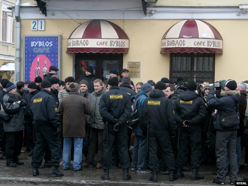 13:25 Правакатар спрабаваў сарваць акрэдытацыі ў журналістаў Літоўскага радыё і "Нямецкай хвалі". Міліцыя яго не чапала.