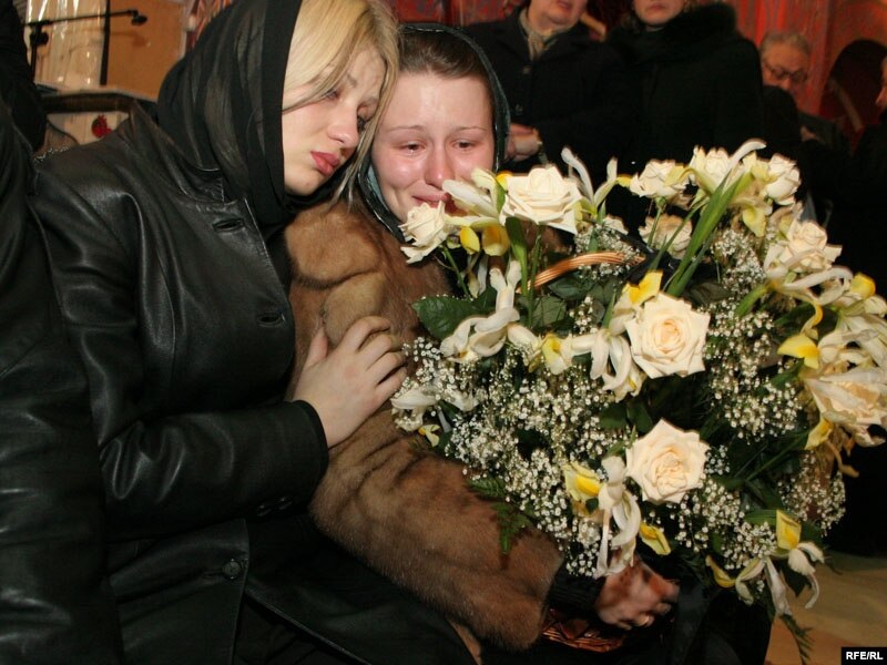 У касьцёле сабралася каля 2 тысячаў чалавек. Людзі нясуць кветкі, вянкі зь бел-чырвона-белымі стужкамі. Ля нябожчыцы - Аляксандар Казулін, дочкі Юля і Вольга, родныя, сябры.