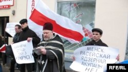 Каля дзесяці чалавек зь бел-чырвона-белым сьцягам утварылі ланцуг перад расейскай амбасадай. Яны трымалі плякаты: “Не дапусьцім расейскай атамнай зброі на Беларусі!”, “Расейскай ядзернай акупацыі Беларусі – НЕ!”, “Свабоду Беларускай Аўтакефаліі!” і іншыя.