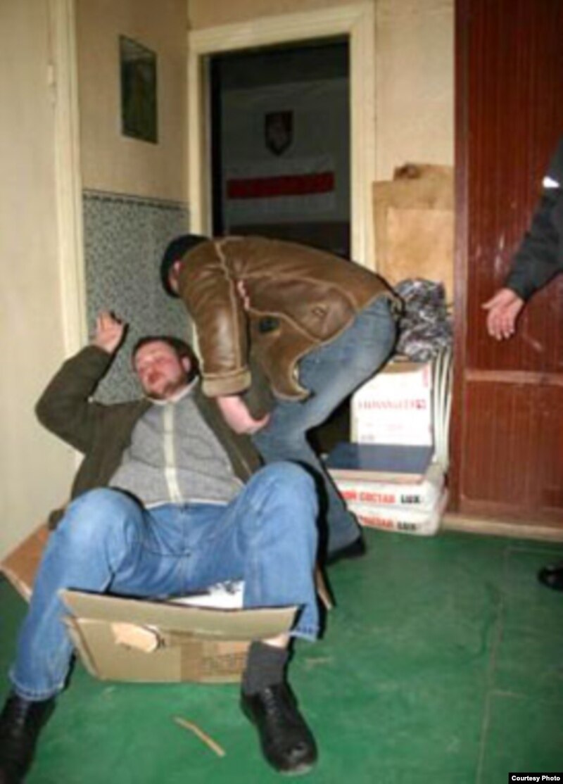 Палітык кажа, што міліцыянты ўжылі гвалт пасьля таго, як ён і Ігар Ходзька селі на пакунак з газэтай “Свабода”, каб ня даць яго вынесьці. Са слоў актывіста, яму разьбілі нос, а Ігар Ходзька страціў прытомнасьць.