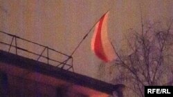 Міліцыянты выклікалі машыну службы МНС, але, не дачакаўшыся, самі ўскараскаліся на дах па пажарнай лесьвіцы ды скінулі сьцяг уніз. Яны абшукалі бліжэйшыя двары, але няўлоўнага Мірона ім адсачыць не ўдалося.
