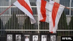Удзельнік акцыі запалілі зьнічы каля пастаўленых ля агароджы амбасады партрэтаў зьніклых.