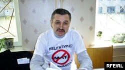 На знак пратэсту супраць апошняга абвінавачаньня віцебскі прадстаўнік БХК прыйшоў у Першамайскі райсуд у майцы з надпісам “Нецензурно не выражаюсь”.