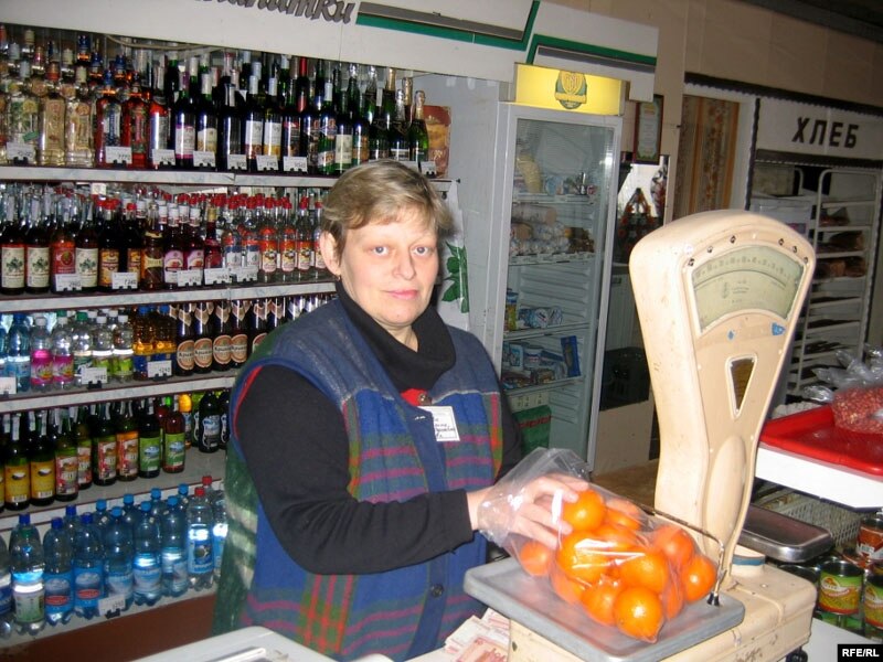 Кажа былая калгасная мулярша, 59-гадовая Ніна Вераскавец. Хоць на ўласнае жыцьцё ня надта наракае — пэнсія 380 тысяч. У пустую краму заходжу зь ёй. Але загадчыца Галіна Марозава кажа, што праблем няма — дзённая выручка пад 600 тысяч, нядзельная — паўтара мільёна. Гэта пры тым, што…