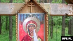 “Ужо трэці раз мы займаемся тым, каб неяк аднавіць гэтую каплічку. Тое, што зрабілі вандалы, гэта, канечне, уражвае настолькі. І мы думаем з маім сынам Ігарам зрабіць плякат, якраз прысьвечаны Курапатам. Бо вандалы, калі абрывалі гэтую выяву, то нейкім чынам засталося вока Маці Божай і сьлёзы. Гэта так сымбалічна. Гэта вобраз пакутаў і вобраз плачу. Але сёньня мы знаходзімся ў Курапатах і мы адновім гэтую каплічку і будзем спадзявацца, што, можа, усё ж такі ў тых, хто робіць такую чорную справу прачнецца сумленьне. Бо для нас Курапаты, як для палякаў Катынь. Гэта месца нявінна расстраляных”.