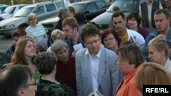 “А 8-й гадзіне я падышла да будаўнічай пляцоўкі. Там яшчэ стаяла жанчына таксама з нашага дома. Падбеглі гэтыя шакалы з будаўнічай пляцоўкі і пачалі нас праганяць. Я сказала, а ў чым справа, што я ня маю права стаяць? Я закон не парушаю. А потым яны кінуліся да маёй суседкі і пачалі яе штурхаць у бок. Потым яны падбеглі да мяне, пачалі мяне абзываць нецэнзурнымі словамі.Потым яны падышлі да маёй суседкі і працягнулі яе ў другі бок. Калі прыехаў кран я стала насупраць крану. Міліцыя прыехала раз, потым другі, трэці раз. Потым прыйшоў наш участковы з Гамарніка,14, іх было 4 чалавекі, міліцыянты мяне паднялі на рукі.Яны мяне давялі да машыны, але я сказала, што нікуды не паеду. Тады яны мяне прывялі ў апорны пункт і зрабілі тут допыт”, - кажа Ніна Нарубай.