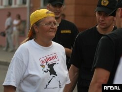 Увесь час калёну суправаджалі дзьве асобы, якія ўвесь час выкрыквалі лёзунгі, крычалі дэманстрантам, што яны ўсе “прадаліся ЗША”, “служаць Бушу” і падобнае. Спэцназаўцы не дазвалялі рабіць ім заўвагі, і гэтак яны прайшлі за калёнай да вуліцы Максіма Багдановіча.