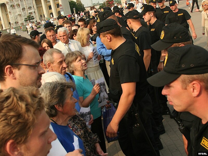 Дэманстрантаў выцесьнілі з Кастрычніцкай плошчы. Падчас выцясьненьня быў зьбіты лідэр Аб'яднанай грамадзянскай партыі Анатоль Лябедзька.