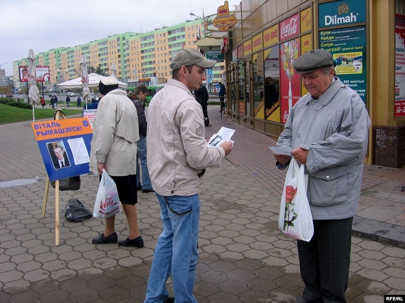 Віталь Рымашэўскі і ягоныя паплечнікі праводзяць агітацыю ў некалькіх месцах выбарчай акругі адначасна.
