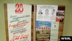 Разьвітваемся на ганку. Бачу на дзьвярах школы сьціплыя чорна-белыя партрэты трох кандыдатаў. Ці ня мала агітацыйных матэрыялаў, каб добра праінфармаваць выбарнікаў? Георгій Андрушчанка лічыць, што дастаткова: