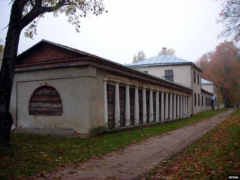 Восень тут, напэўна, самая прыгожая пара году. Старыя ліпавыя прысады, якія вядуць да невялікага палацу, так і зіхацяць восеньскімі фарбамі. Першы чалавек, якога сустракаю, спадар Аркадзь, прыбірае лісьце.
