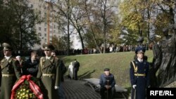 Перад прысутнымі выступіў Аляксандар Лукашэнка. Пасьля хвіліны маўчаньня пачалося ўскладаньне кветак.