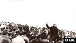 Потым усё шэсьце рушыла ўздоўж дарогі, па кар’еру, на Курапаты. Спыніліся ў нейкім катлаване, калі зразумелі, што ў Курапаты не пусьцяць. Пачаўся мітынг і быў страшэнны холад, моцны халодны вецер, ішоў дробны сьнег. І калі пачалі акружаць людзей, людзі селі на зямлю, каб заслухаць адозвы аргкамітэту “Мартыралёгу”.