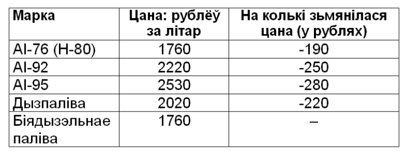 “Зьніжэньне цэнаў выкліканае зьніжэньнем кошту нафты на міжнародным рынку”, — паведамілі Інтэрфаксу ў “Белнафтахіме”.