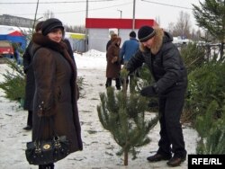 Для жывых ялінак на Давыдаўскім рынку месца адвялі за гандлёвымі радамі. Тут “зялёны тавар” прапануюць прадпрымальнікі з Добрускага раёну. Кажуць, што адмыслова гадуюць ялінкі на гародзе 7-8 гадоў, а пасьля высякаюць і прадаюць:
