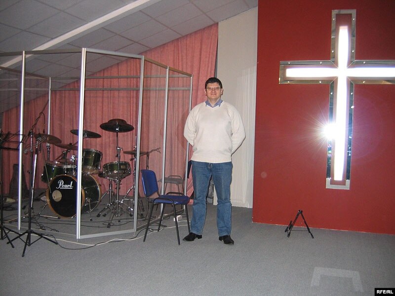 У сталічным раёне Малінаўка мяне сустрэў пастар і адначасова біскуп Аб’яднаньня абшчын поўнага Эвангельля Беларусі Вячаслаў Ганчарэнка. Праехалі на машыне некалькі кілямэтраў — ня так даўно царква адносілася да Менскага раёну.