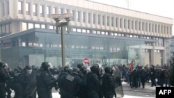 Адбыліся сутычкі дэманстрантаў за паліцыяй. Паранены адзін паліцыянт і некалькі пратэстоўцаў. Пратэстоўцы сабраліся ля парлямэнту, некаторыя зь іх кідалі ў будынак яйкі, сьняжкі і бутэлькі з кактэйлем Молатава. Пабітыя больш за 10 вокнаў. Міліцыя разагнала дэманстрантаў з выкарыстаньнем сьлезацечнага газу і гумовых куль.