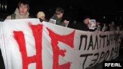 Празь некалькі хвілінаў пасьля таго як актывісты моладзевага руху сталі ў ланцуг салідарнасьцямі з новымі палітвязьнямі на Кастрычніцкай плошчы, іх абкружылі спэцназаўцы й пачалі адціскаць з плошчы.
