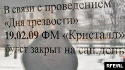 Апоўдні крама алькагольных напояў “Крышталь” сустракае наведнікаў зачыненымі дзьвярыма. На іх абвестка: “У сувязі з Днём цьвярозасьці крама зачыненая на санітарны дзень”. Людзі спачатку грукаюць у дзьверы, а потым чытаюць саму абвестку.