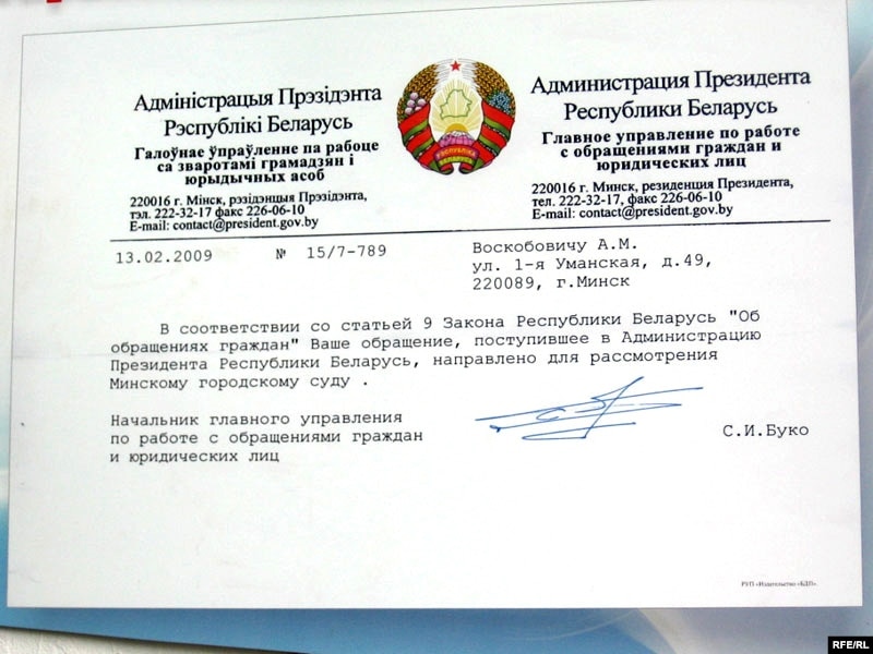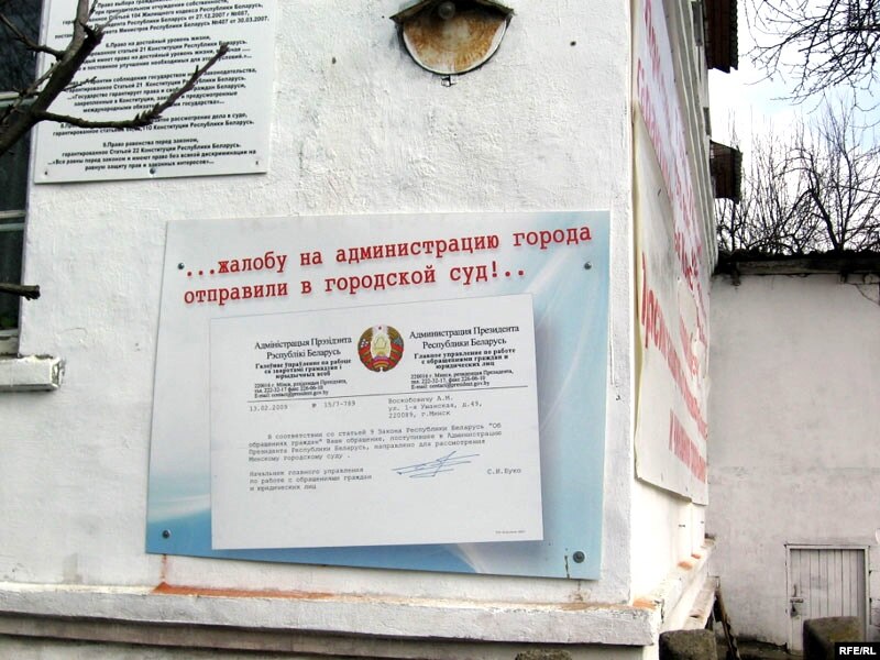 На доме сям’і Васкабовічаў зьявіўся новы плякат. “Спадар прэзыдэнт! Просім абараніць ад самавольства суду Маскоўскага раёну і чыноўнікаў гарадзкой адміністрацыі”. /img/icon-photogallary.gif