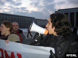 На Кастрычніцкай плошчы сабраліся прадстаўнікі моладзевых арганізацый на знак салідарнасьці з чатырма палітвязьнямі, якія цяпер знаходзяцца за кратамі. На плошчы знаходзіцца наша карэспандэнтка Любоў Лунёва.