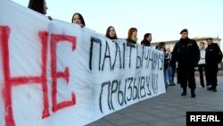 Іншая мэта акцыі – патрабаваньне вызваліць палітвязьняў. Моладзь скандавала "Свабоду!" і трымала ў руках партрэты Мікалая Аўтуховіча, Юрыя Лявонава, Ігара Асіпенкі і Арцёма Дубскага, якога, магчыма, у канцы гэтага месяца будуць судзіць за парушэньне правілаў адбыцьця пакараньня па справе 14-ці.