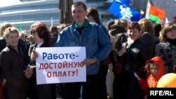 Хлопец: “Мы прыйшлі ад 10-й бальніцы. Ну, там мае бацькі працуюць. Яны прыйшлі, і мы разам зь імі. Гэта сьвята працы... Ну, відаць, працаваць сёньня ня трэба, а трэба адпачываць”.