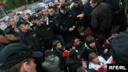 Праз нейкі час маладафронтаўцы вырашылі спыніць спробы прайсьці маршам ў бок плошчы Незалежнасьці.