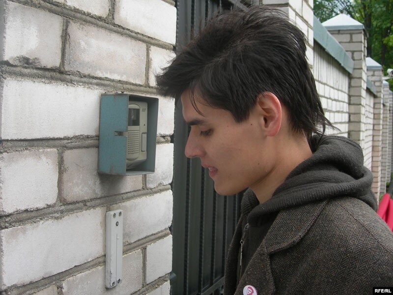Андрэй Кім праз гукавую сувязь на дзьвярах амбасады папрасіў у супрацоўніцы амбасады дазвол на тое, каб ускласьці кветкі.