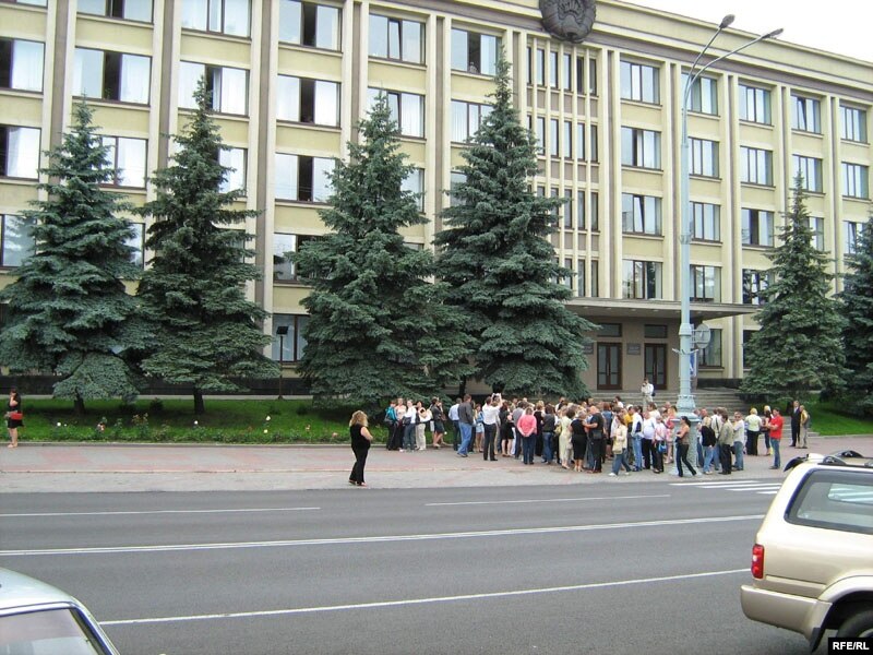 Усе, хто як і Іван Паддубны, прыйшоў сёньня да аблвыканкаму, хацелі сустрэцца з кіраўніцтвам абласной выканаўчай вэртыкалі. Аднак прадпрымальнікам патлумачылі, што ў дадзены момант ні старшыні, ні ягоных намесьнікаў на месцы няма. З прадпрымальнікамі гутарылі кіраўніца камітэту эканомікі Эльвіра Карніцкая й начальнік управы гандлю Валяр’ян Бяспалы. Яны прапанавалі вылучыць 5 прадпрымальнікаў дзеля размовы. Аднак людзі не пагадзіліся — патрабавалі агульнай сустрэчы. У выніку прадпрымальнікі перадалі ў аблвыканкам сабраныя на месцы подпісы супраць забароны продажу піва ў гарадзкіх шапіках.