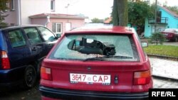 На здымку — машына нашага карэспандэнта Міхала Карневіча. У той час, калі ён знаходзіўся ў залі астравецкага кінатэатру на слуханьнях па будаўніцтве АЭС, невядомы выбіў шыбу.