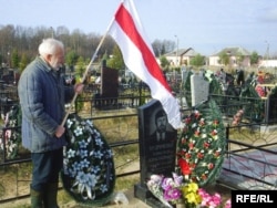 Каля кожнай магілы спадар Хамайда разгортваў бел-чырвона-белы сьцяг і ўскладаў кветкі.