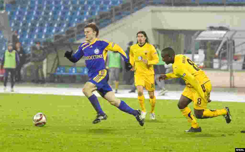 Пераможны гол - Футбалісты барысаўскага БАТЭ атрымалі першую перамогу ў групавым турніры Лігі Эўропы. У Менску БАТЭ зь лікам 2:1 перагуляў грэцкі АЭК. Пераможны гол