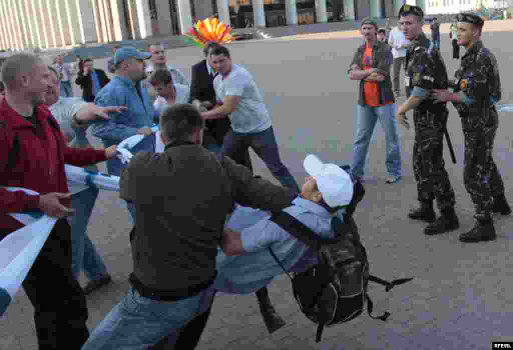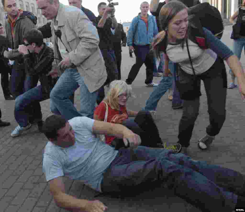 Міліцыя жорстка разагнала акцыю на Кастрычніцкай