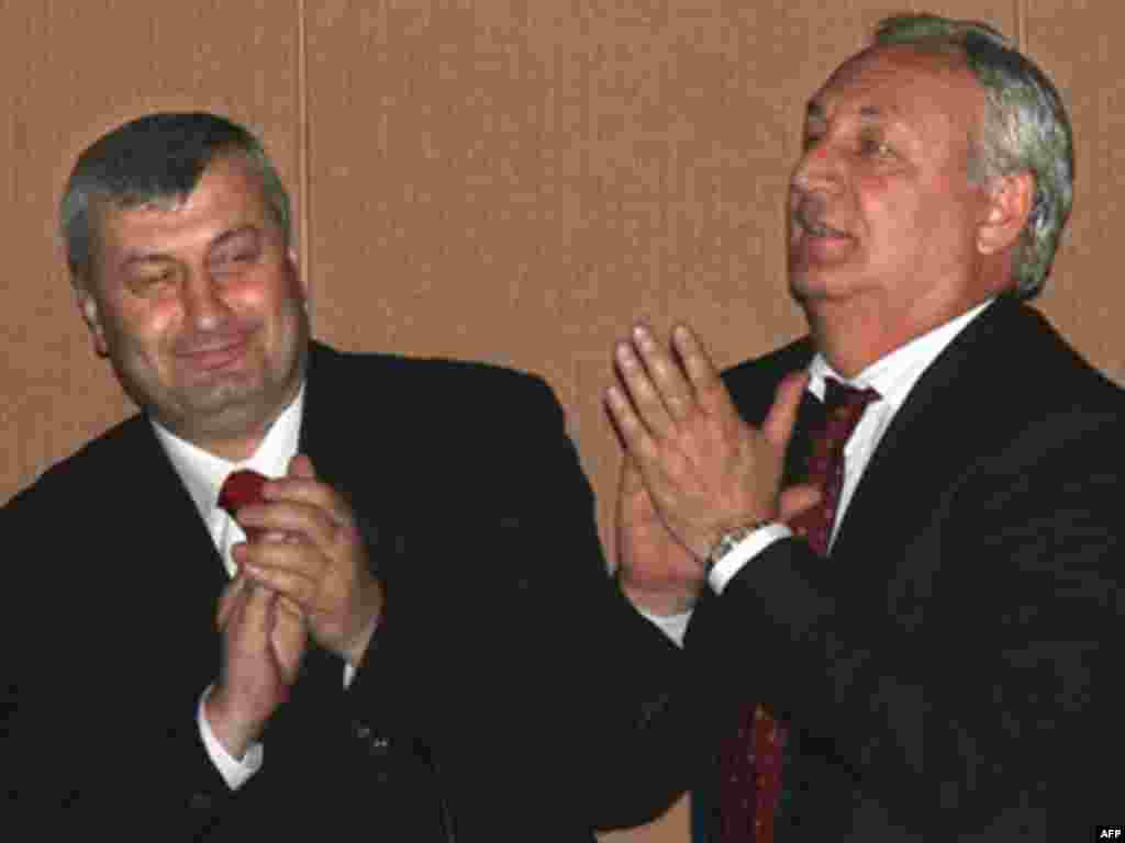 Эдуард Какойты і Сяргей Багапш на паседжаньні Рады Фэдэрацыі ў Маскве 25 жніўня