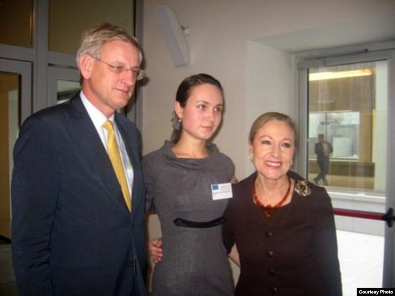 Карл Більт, Тацяна Шапуцька, Бэніта Фэрэра-Вальднэр падчас Форуму грамадзянскай супольнасьці, Брусэль, лістапад 2009. Фота: Facebook Тацяны Шапуцькі