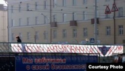 Старшыня моладзевага грамадзкага аб’яднаньня “Маладая Беларусь” Зьміцер Касьпяровіч паведаміў “Свабодзе”, што актывісты арганізацыі на знак салідарнасьці з Мікалаем Аўтуховічам і Ўладзімерам Асіпенкам, якіх судзяць у Вярхоўным судзе, а 8 раніцы вывесілі расьцяжку на мосьце каля ўнівэрмагу “Беларусь”.