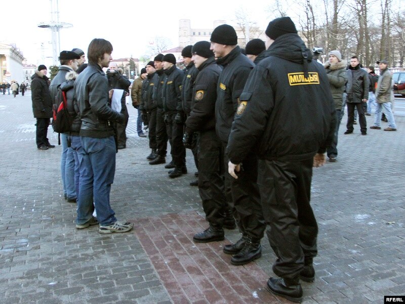 17:57 Падыходы да Кастрычніцкай плошчы ачэпленыя міліцыянтамі у цывільным. На падыходах яны затрымліваюць актывістаў. Перад 18-й гадзінай ля скрыжаваньня з вуліцай Леніна быў затрыманы Мікола Дземідзенка. Потым на плошчы затрымалі Алеся Чарнышова і актывіста Дзьмітрыя Кахаўца.