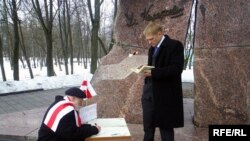 Барыс Хамайда сэнс акцыі патлумачыў тым, што Дзень Беларускай Народнай Рэспублікі быў адным з улюбёных сьвятаў Уладзімера Караткевіча і гэткім чынам ён адзначае сьвята БНР і ўшаноўвае памяць пісьменьніка. Актывіст таксама заявіў, што працягне пісаць дыктоўку і ў пастарунку. Сяргей Каваленка таксама накіраваўся ў міліцыю, каб маральна падтрымаць Барыса Хамайду.