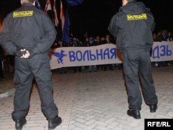 Дашчынскі: Я думаю, наўрад ці тут ёсьць тыя людзі, якімі палохаў начальнік менскай міліцыі Фармагей. Мне здаецца, што тут шмат сталых удзельнікаў гэтых сьвяткаваньняў і вельмі шмат моладзі, якая прадстаўляе розныя моладзевыя арганізацыі. Пакуль што працягваецца вельмі міралюбная акцыя.