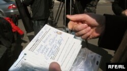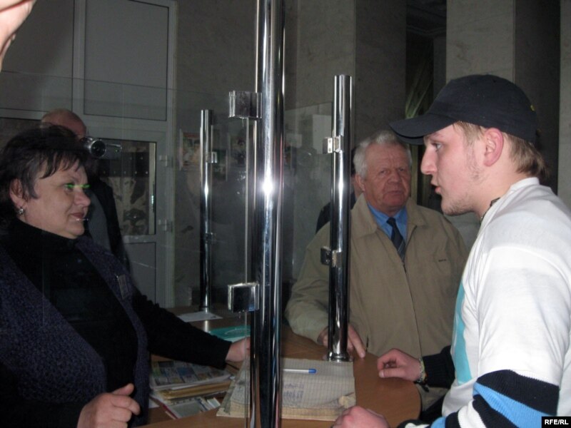 У прыёмную кіраўніка грамадзкай кампаніі "Гавары праўду" Ўладзімера Някляева і ягоных паплечнікаў прапусьцілі пасьля таго, як праверылі дакумэнты.