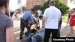 Міліцыянты адразу кінуліся разганяць калёну. У міліцэйскую машыну трапілі чацьвёра ўдзельнікаў акцыі: Вячаслаў Сіўчык, Мікола Дземідзенка, Андрэй Кім і Кацярына Давыдзік. Позна ўвечары затрыманых перавезьлі з Савецкага РУУС у турму на Акрэсьціна. Суды над затрыманымі пройдуць 28 ліпеня.