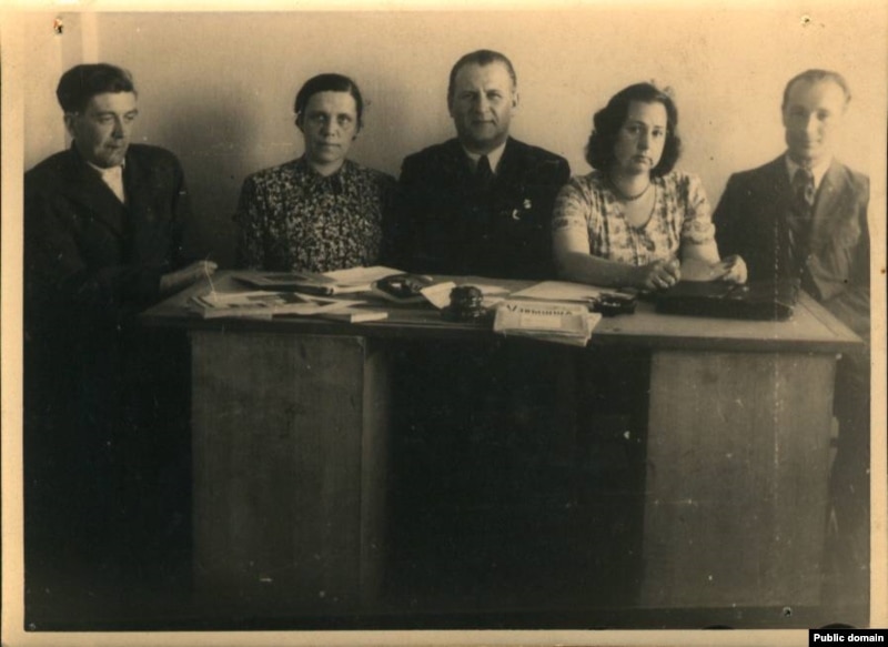 Юрка Віцьбіч, Ларыса Геніюш, Кастусь Езавітаў, Натальля Арсеньнева, Аляксей Анішчык-Чэмер. Менск, 1944 г.
