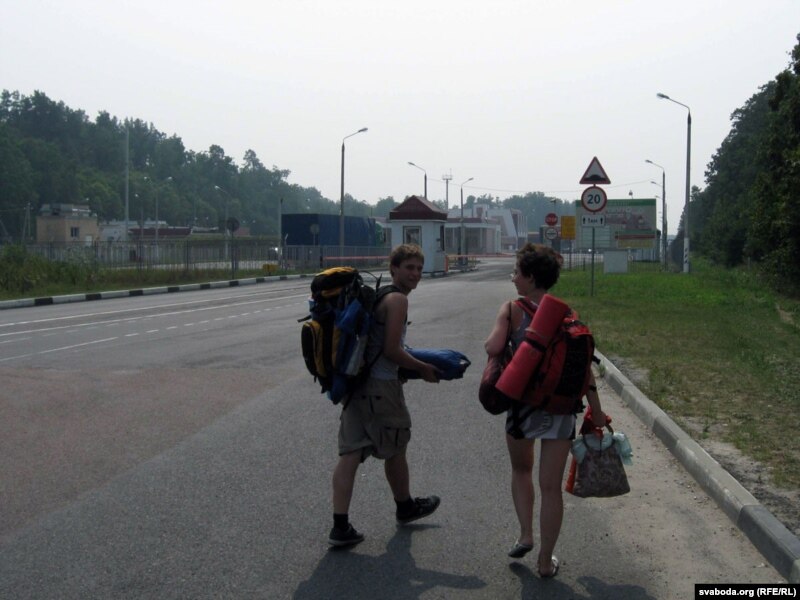 Рыгор: “Мы зь Пецярбургу, падарожнічаем аўтаспынам. Спрабуем дабрацца да Крыму. Зараз паспрабуем перайсьці мяжу — першы раз на беларуска-ўкраінскай мяжы. Што тут рабіць, відаць, яшчэ з кілямэтар трэба ісьці пехатою, каб злавіць машыну”.