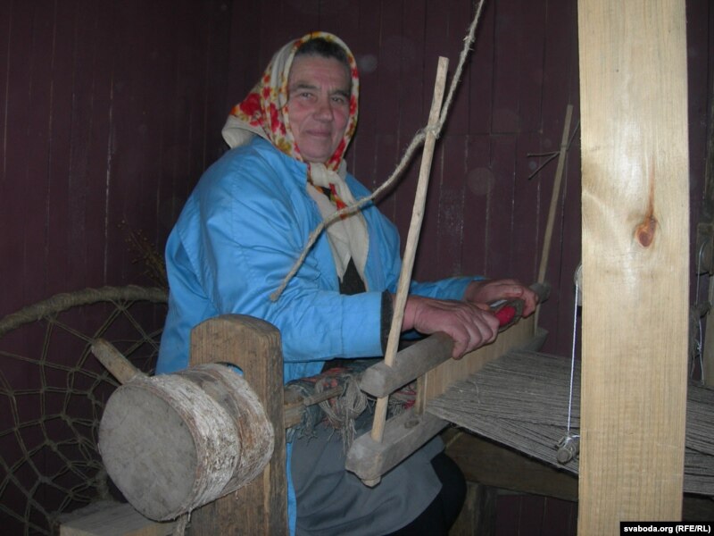 Зося: «Днём толькі ткалі. А ўвечары пралі. На попраткі хадзілі, зьбіраліся пры камянку. Цяпло гарыць, сядзеш і цёпла. Пралі».