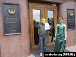 Актывістам дазволілі занесьці зварот у МЗС і пакінуць яго ў скрыні для лістоў наведнікаў. Ніхто з супрацоўнікаў МЗС ня выйшаў пагутарыць зь незвычайнымі гасьцямі.