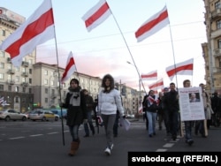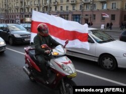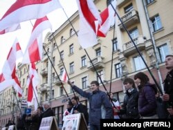 «Я акцыяй вельмі задаволены: паглядзіце, колькі бел-чырвона-белых сьцягоў на праспэкце. Такой акцыі апошнім часам, здаецца, нават не было. Я вельмі задаволены, у мяне добры настрой і ў людзей добры настрой таксама».