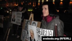 Насупраць пікету па зборы подпісаў за Аляксандра Лукашэнку некалькі актывістаў дасталі плякаты з партрэтамі А.Лукашэнкі і надпісамі: "Злачынца мусіць быць пакараны", "Забойца мусіць сысьці". На іншых плякатах былі партрэты зьніклых апанэнтаў дзейнай улады – Юрыя Захаранкі, Віктара Ганчара, Антоля Красоўскага і Зьміцера Завадзкага з пытаньнем: "Дзе?"