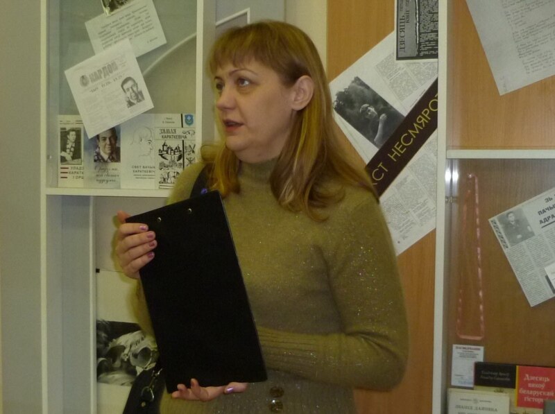 Экскурсію для маладых пісьменьнікаў і паэтаў, а таксама іхных старэйшых калег з СБП правяла Галіна Юркевіч, дырэктарка музэю Уладзімера Караткевіча.