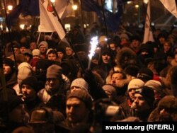 19:00 На разьвітаньне Андрэй Саньнікаў і Ўладзімер Някляеў разам зачыталі верш «А хто там ідзе…». Гучаць заклікі прыйсьці на плошчу 19 сьнежня.
